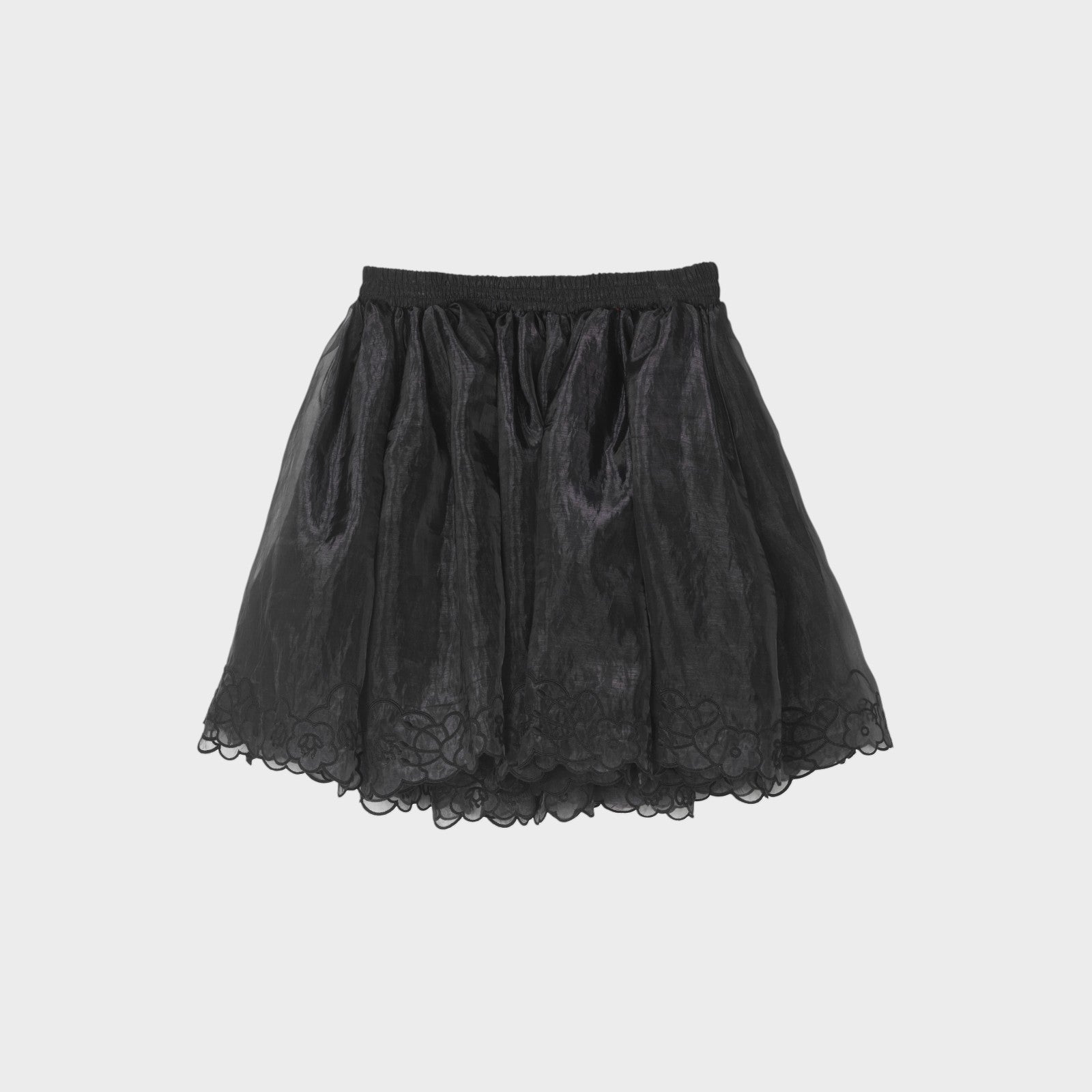 Cecilie Bahnsen Bibiana Myrtia Skirt, gathering at the waist forms sculptural volume, while the delicately embroidered hem adds a whisper of romance. Both effortless and intricate, it moves between dream and discipline with ease.
