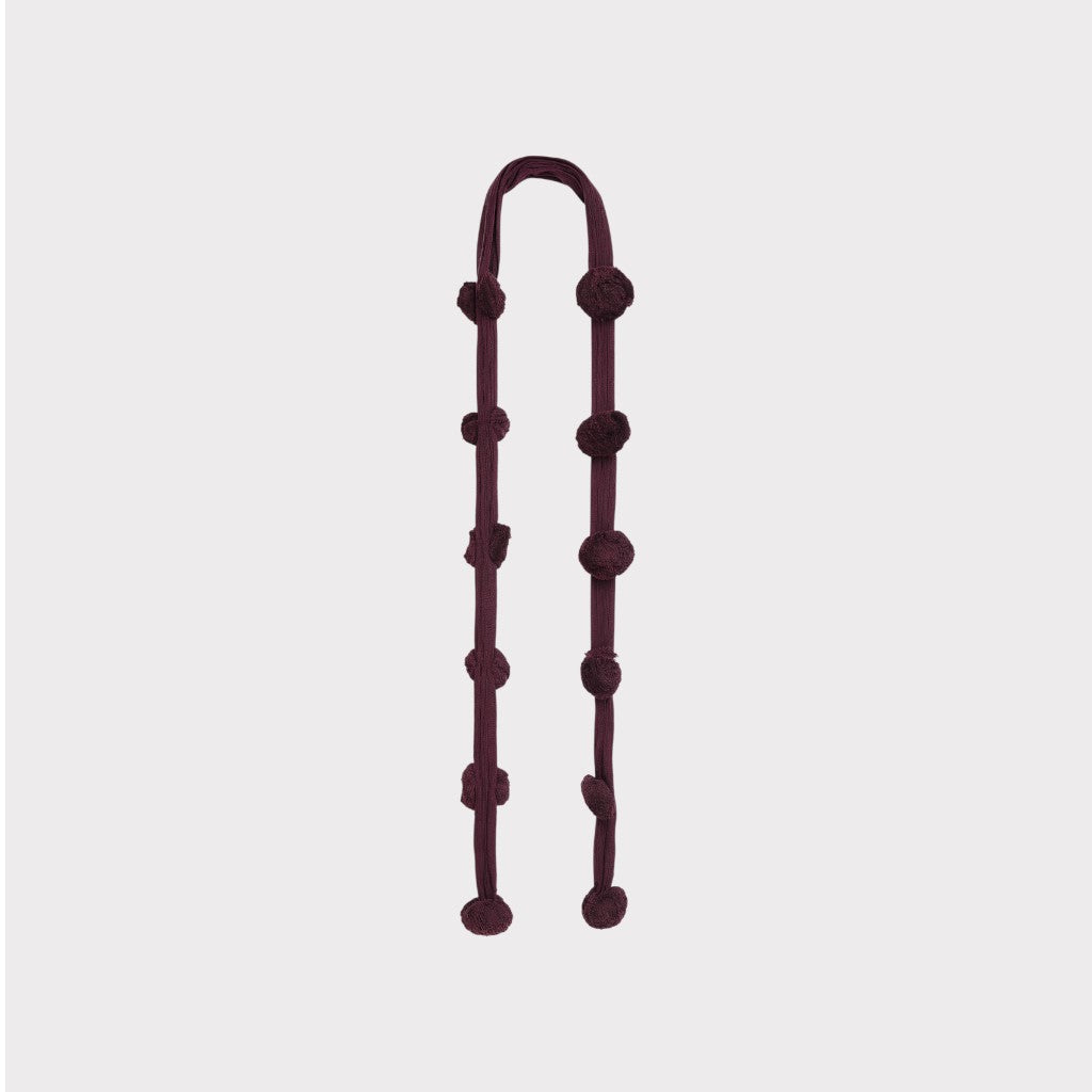 Conner Ives Pom Pom Scarf crafted in soft ribbed knit and punctuated with plush pom poms, it nods to childhood craft and club-kid energy alike — an instantly recognizable accent from the designer’s knitwear series.