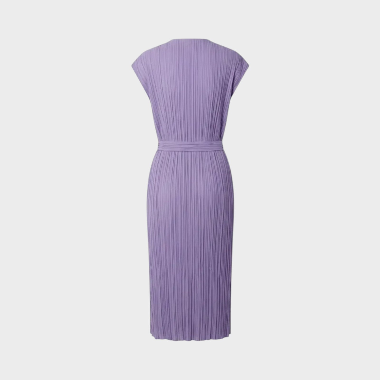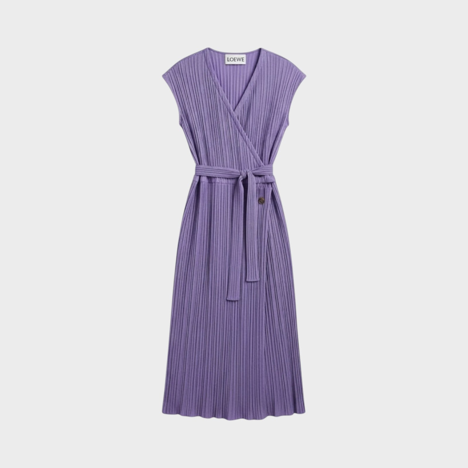 Loewe Pleated Wrap Dress in Purple is made from a lightweight, fully pleated fabric following a fluid, sleeveless wrap silhouette.