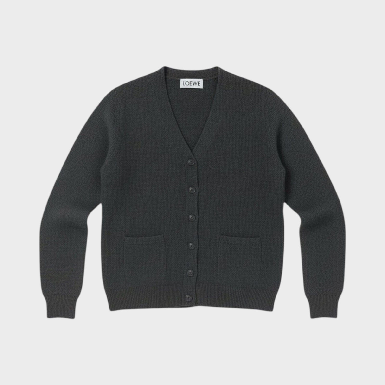 Loewe Wool Anagram Cardigan in Anthracite is made from 100% wool following a regular silhouette with a textured knit finish.