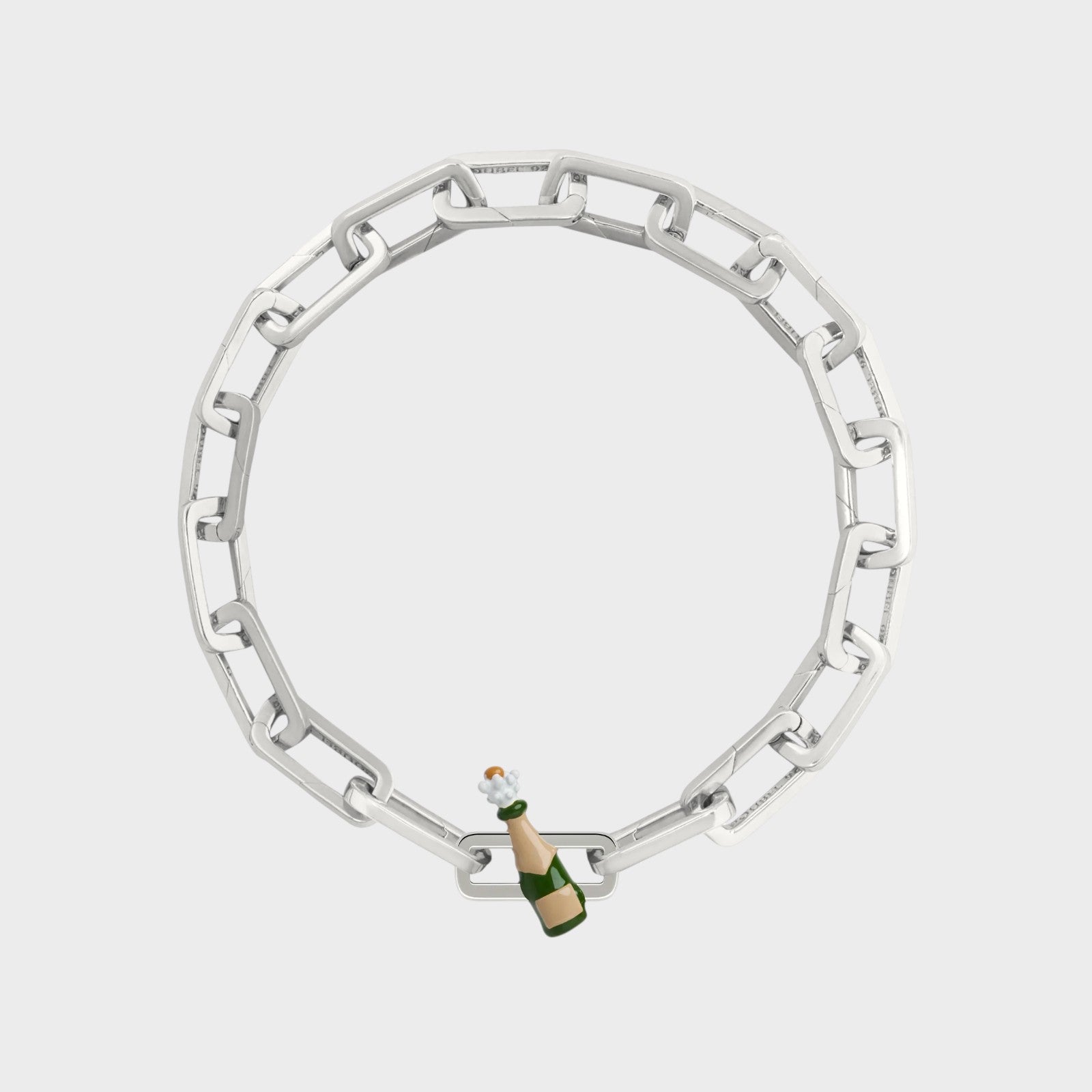 Poubel Champagne Charm pops with cheeky celebration, capturing the thrill of a toast in glossy miniature form. With its effervescent cork and spray detail, this charm brings humor and festivity to any accessory, blending playful design with collectible artistry.