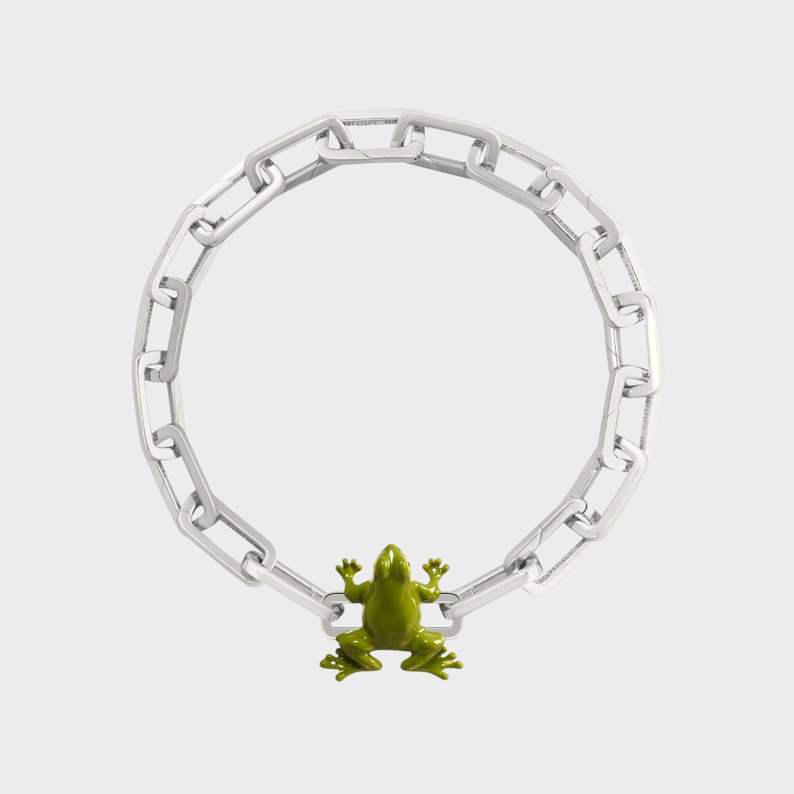 Poubel Frog Charm playfully reimagines the natural world in glossy enamel. Rendered in vivid green with a sculptural amphibian form